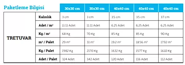 • 30×30 tretuvarlar 324 adet olarak paketlenmektedir.